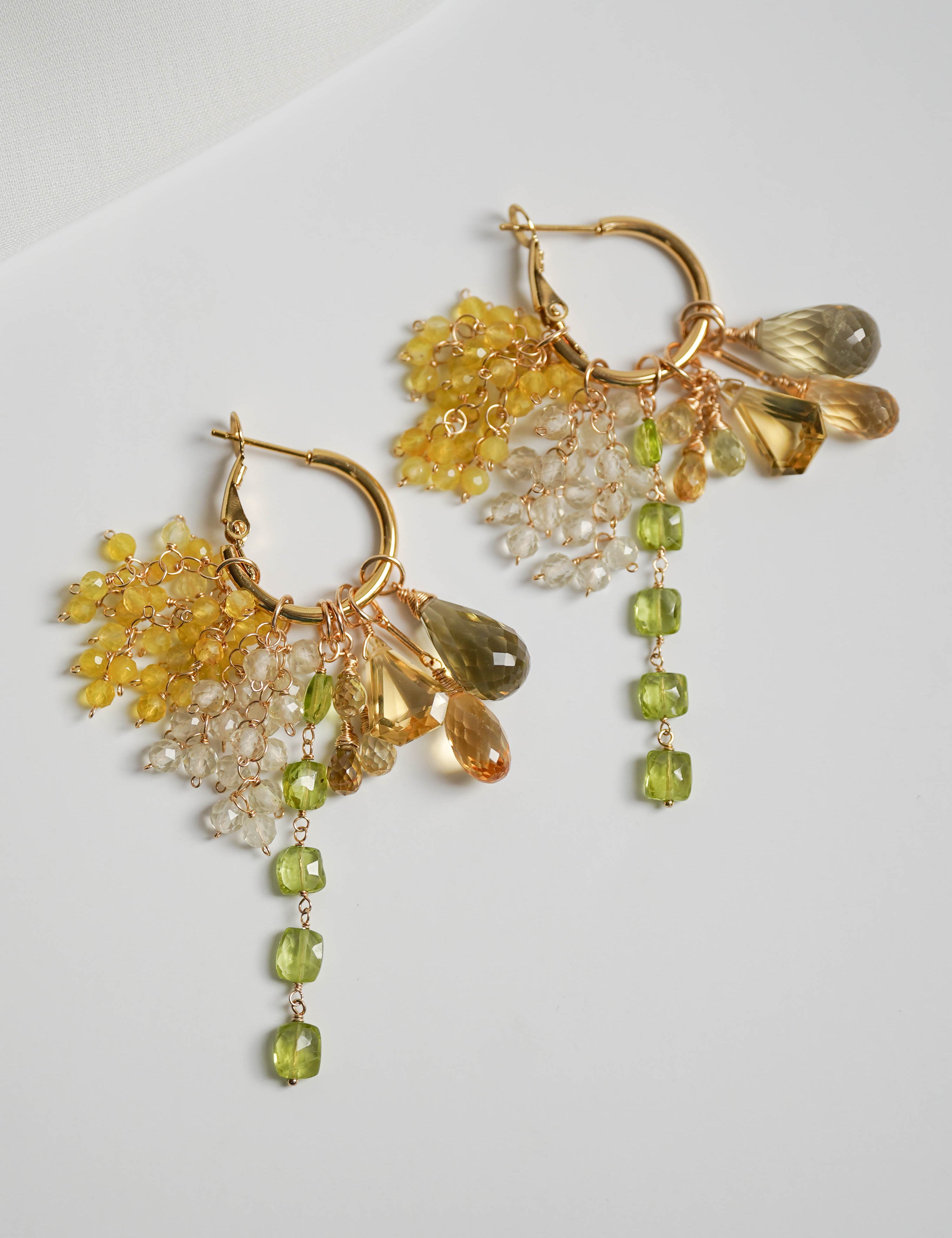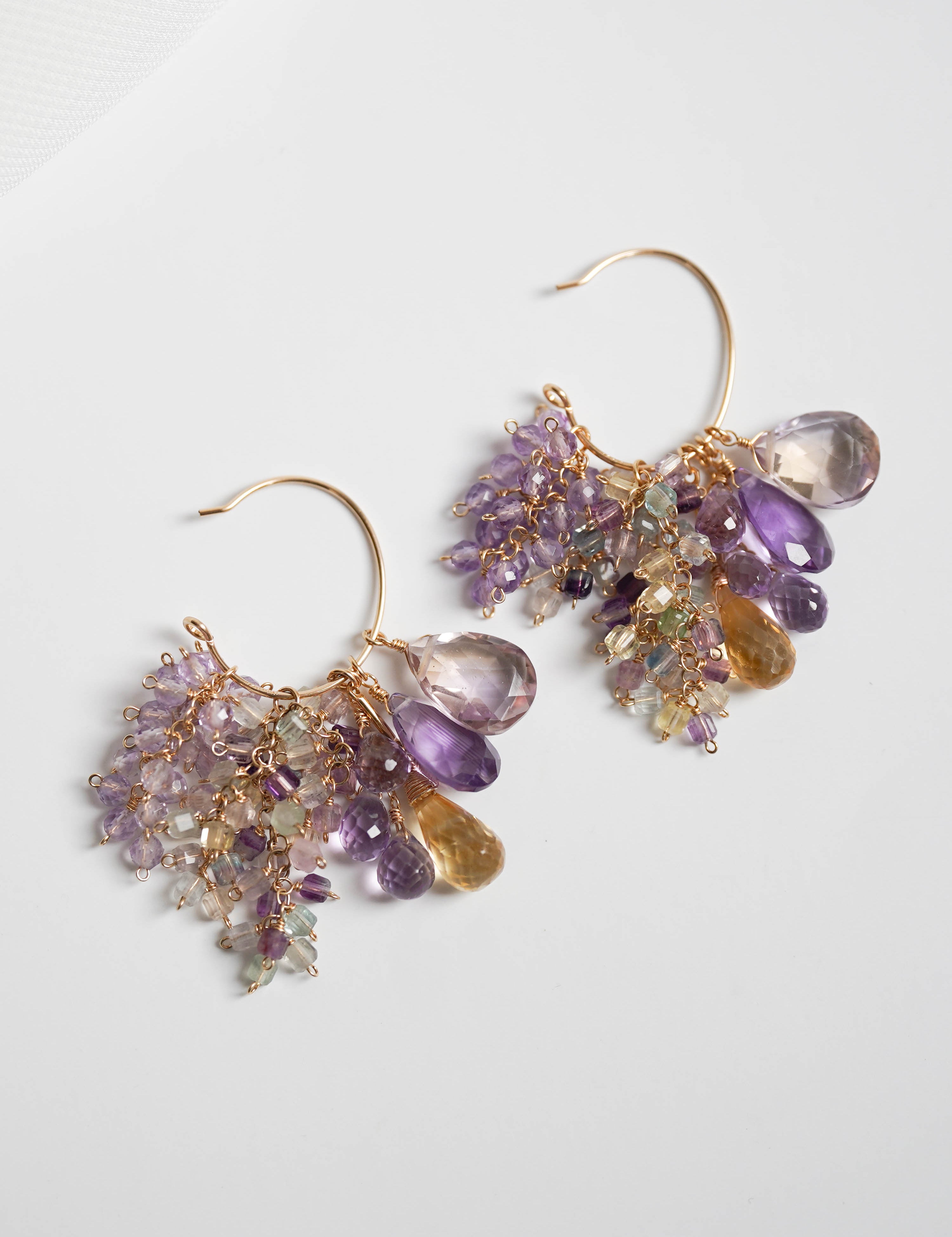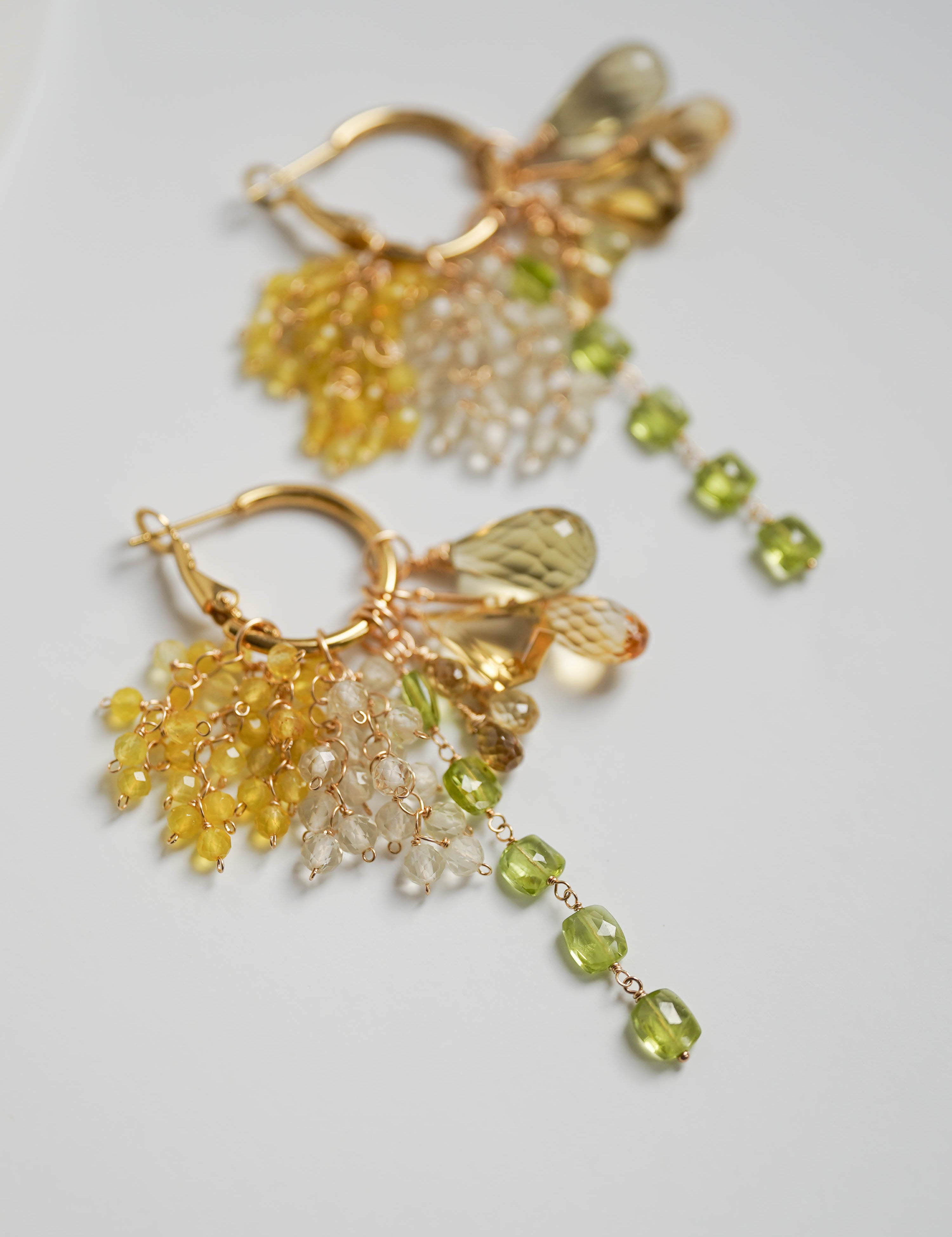 マルチカラーフローライト 変形ダイヤカット ピアス