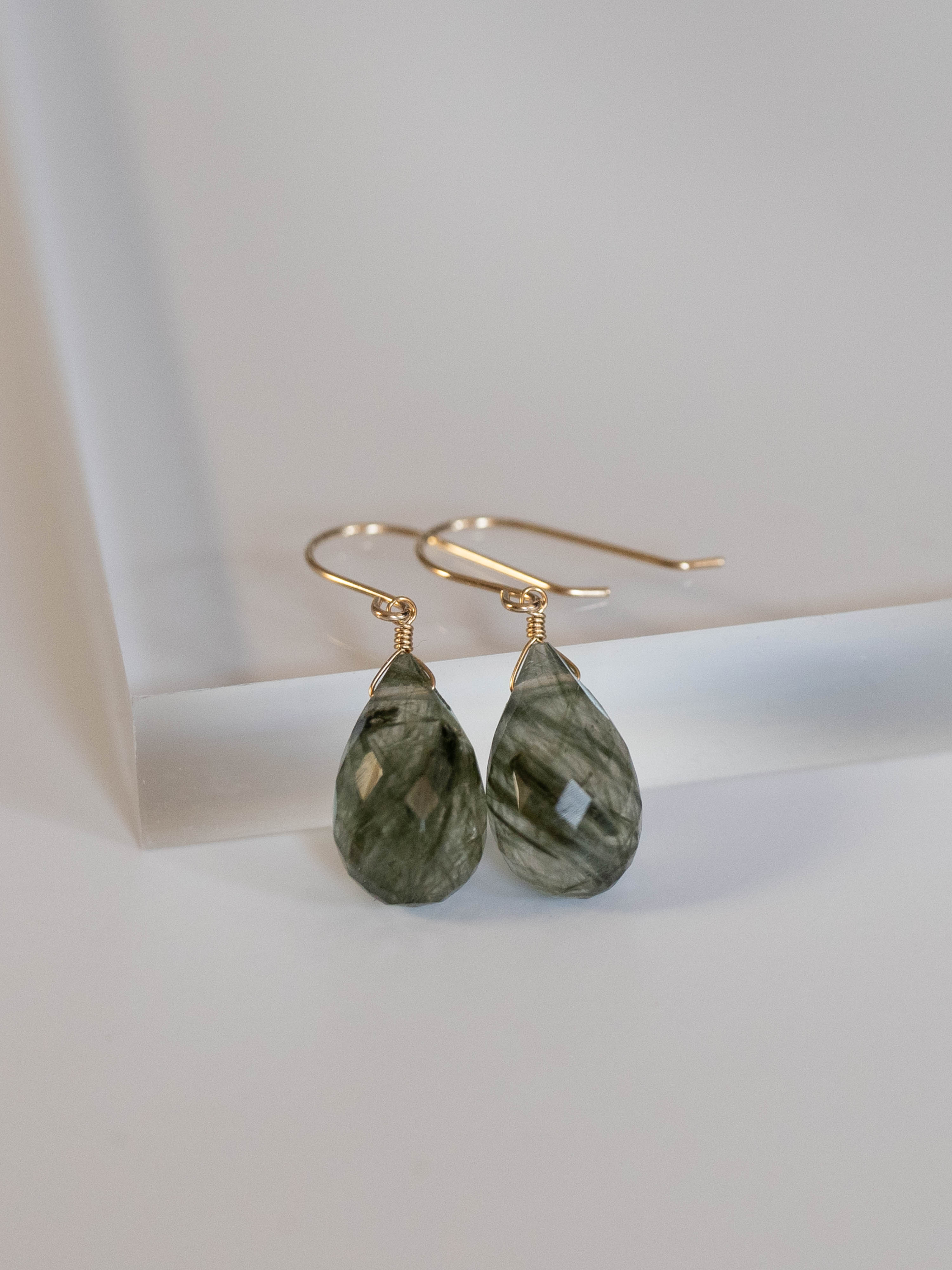 グリーンルチルクォーツ ドロップ ネックレス-A