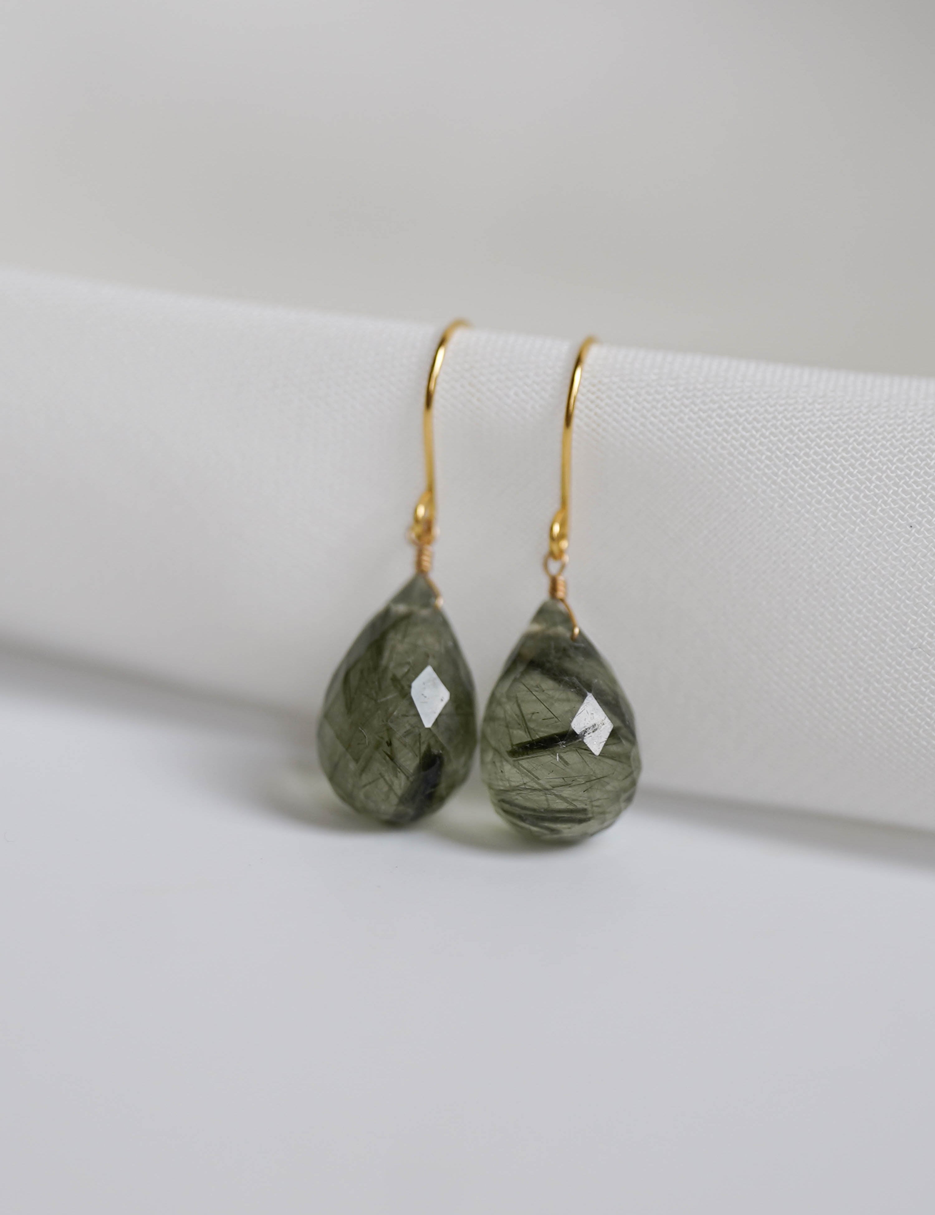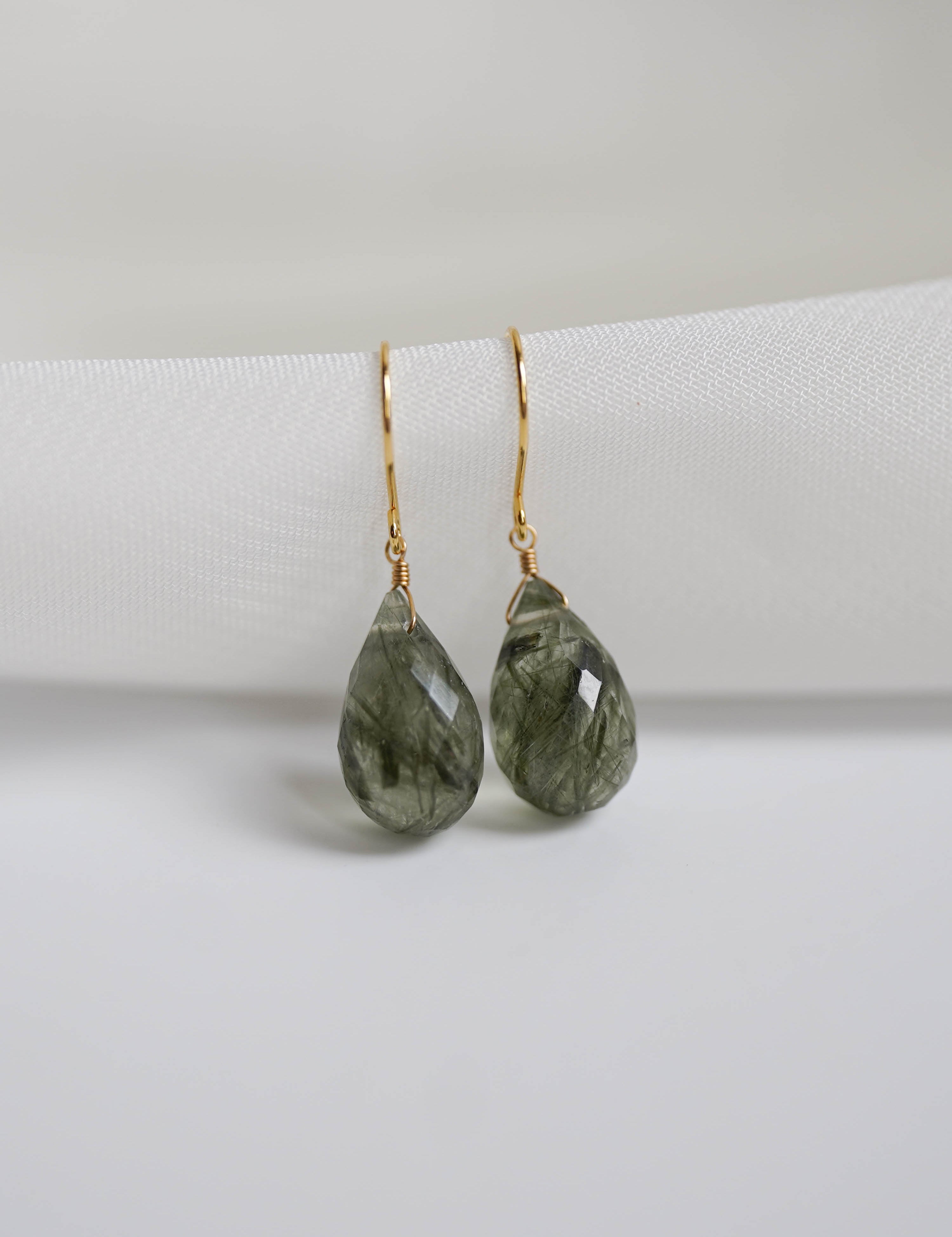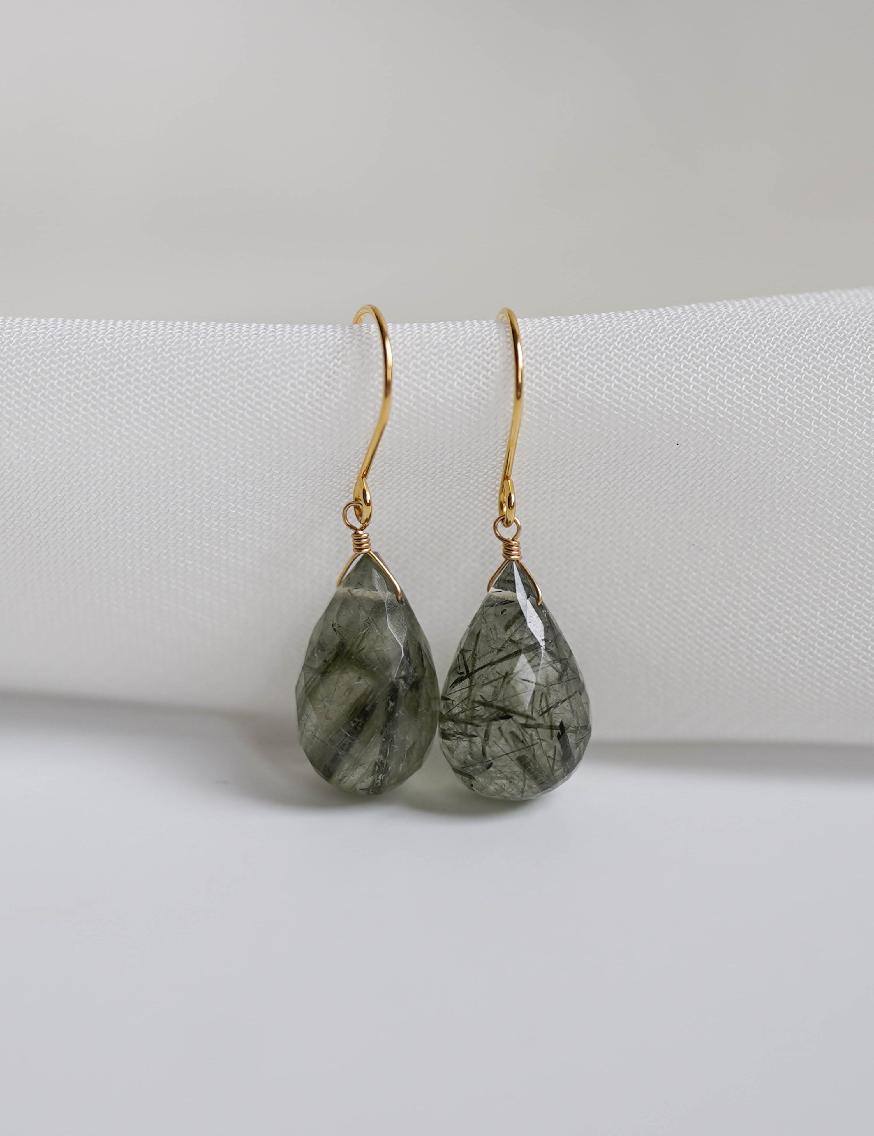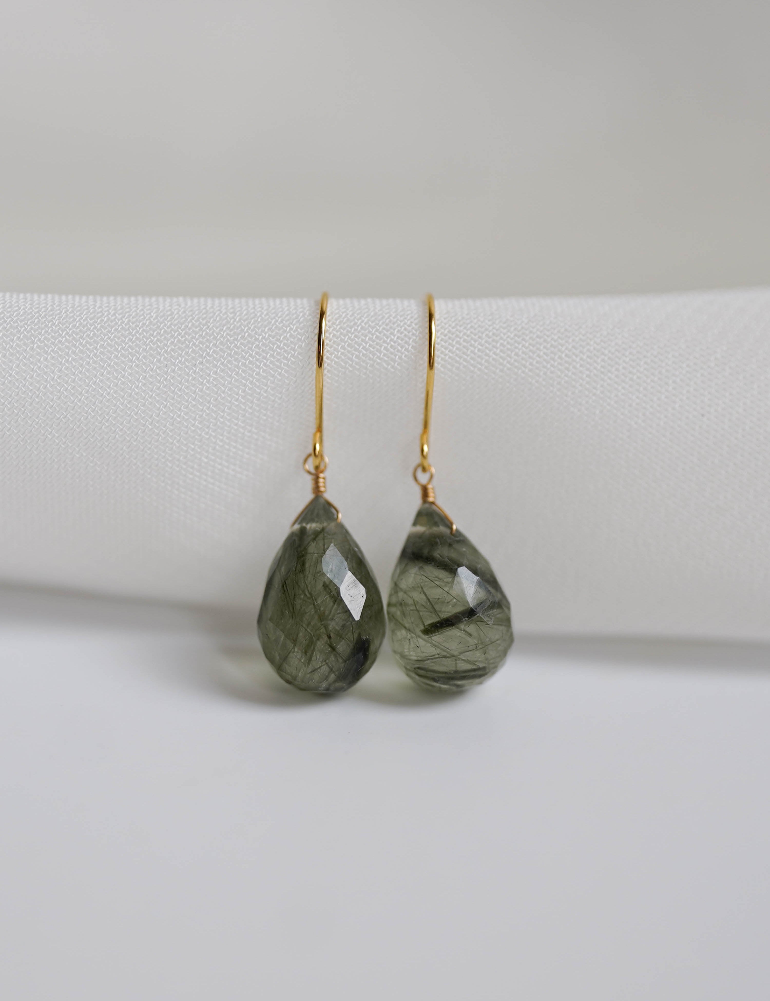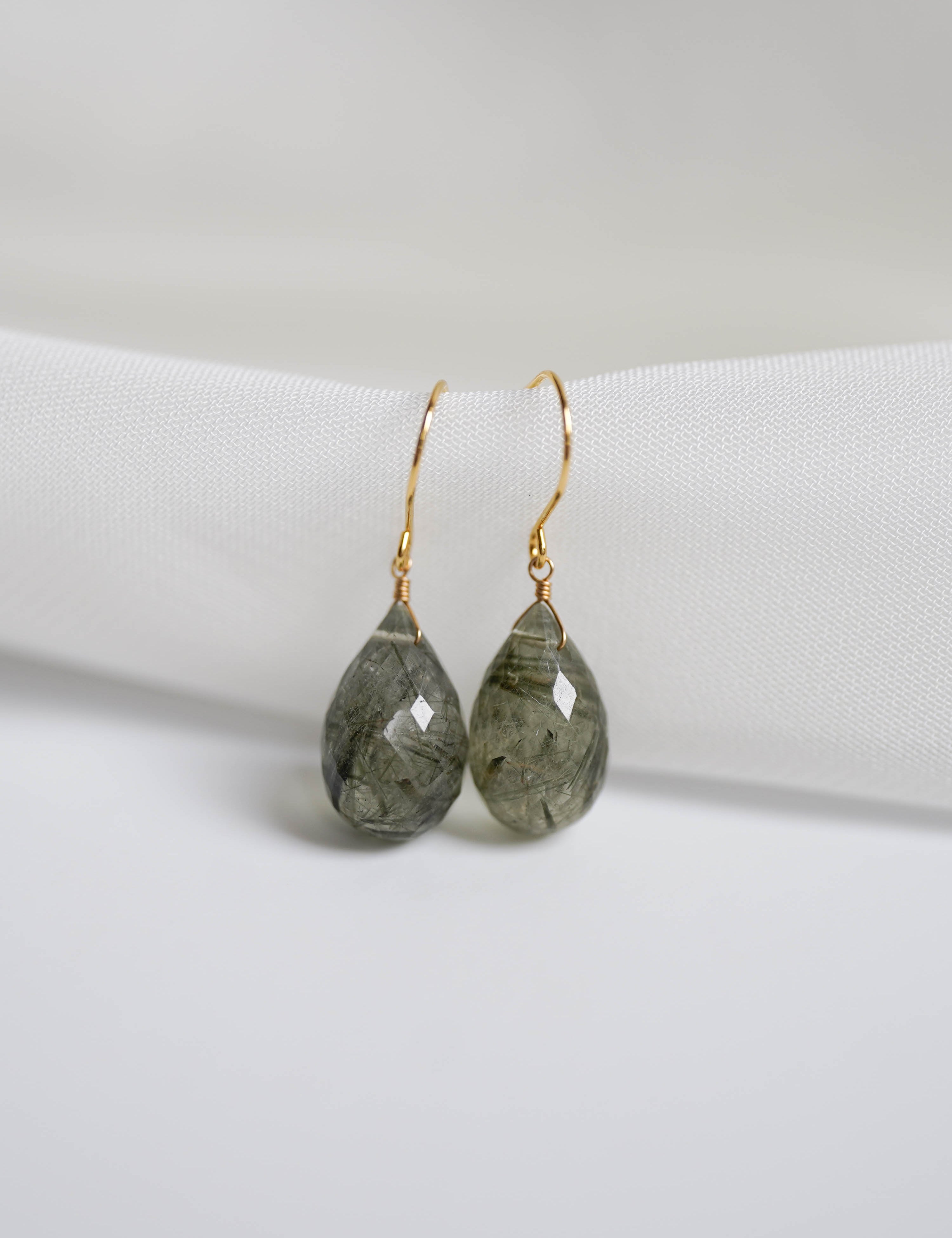 ゴールドルチルクォーツM ペアシェイプ ピアス-E