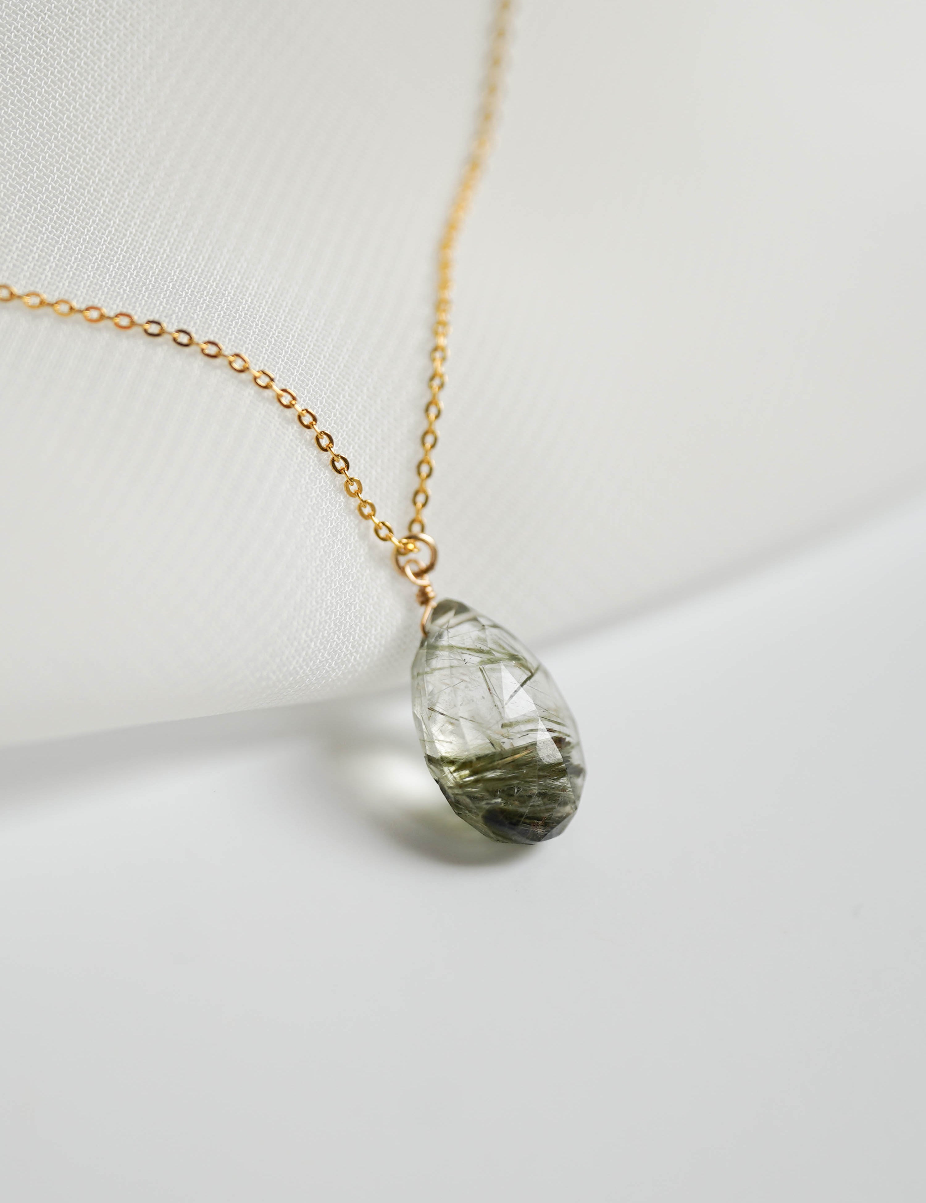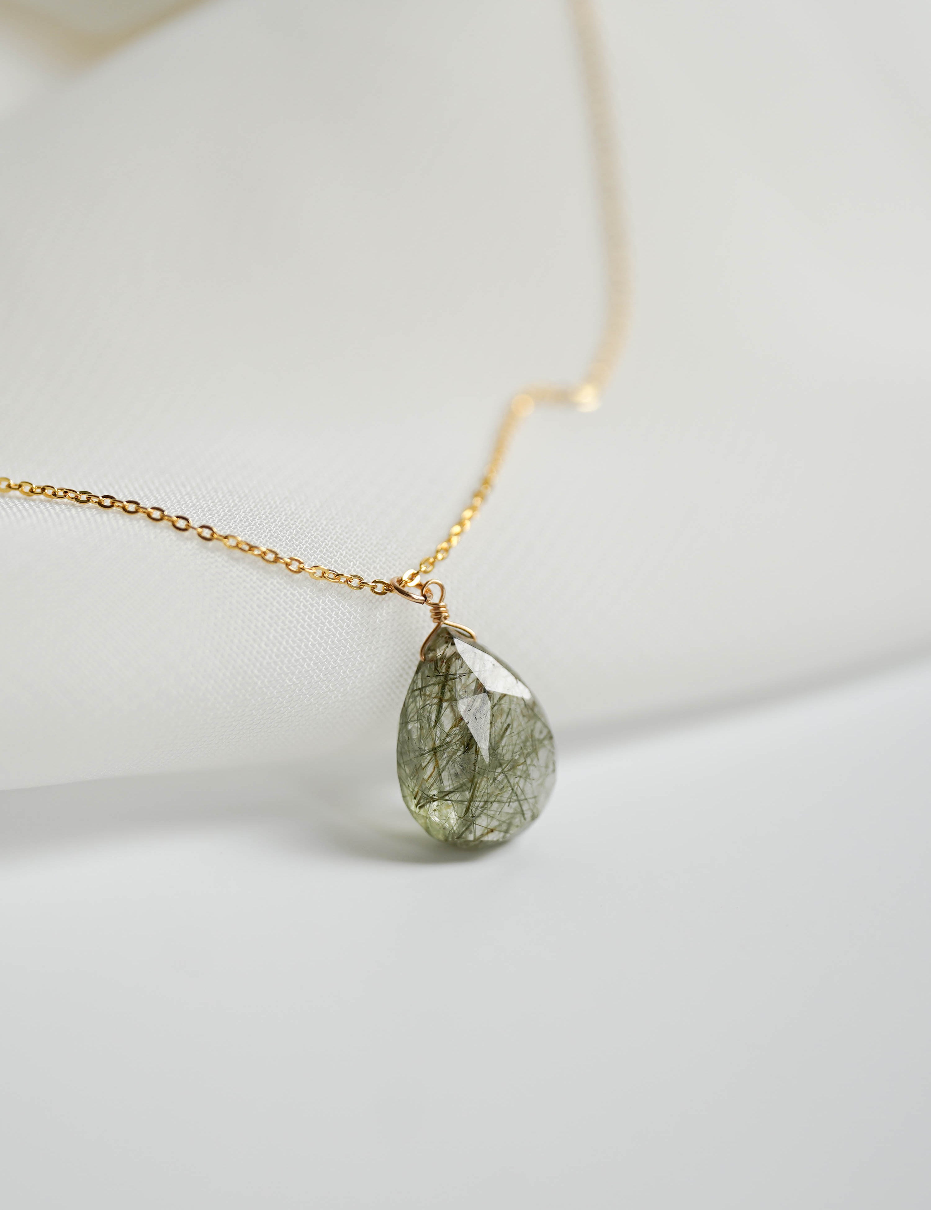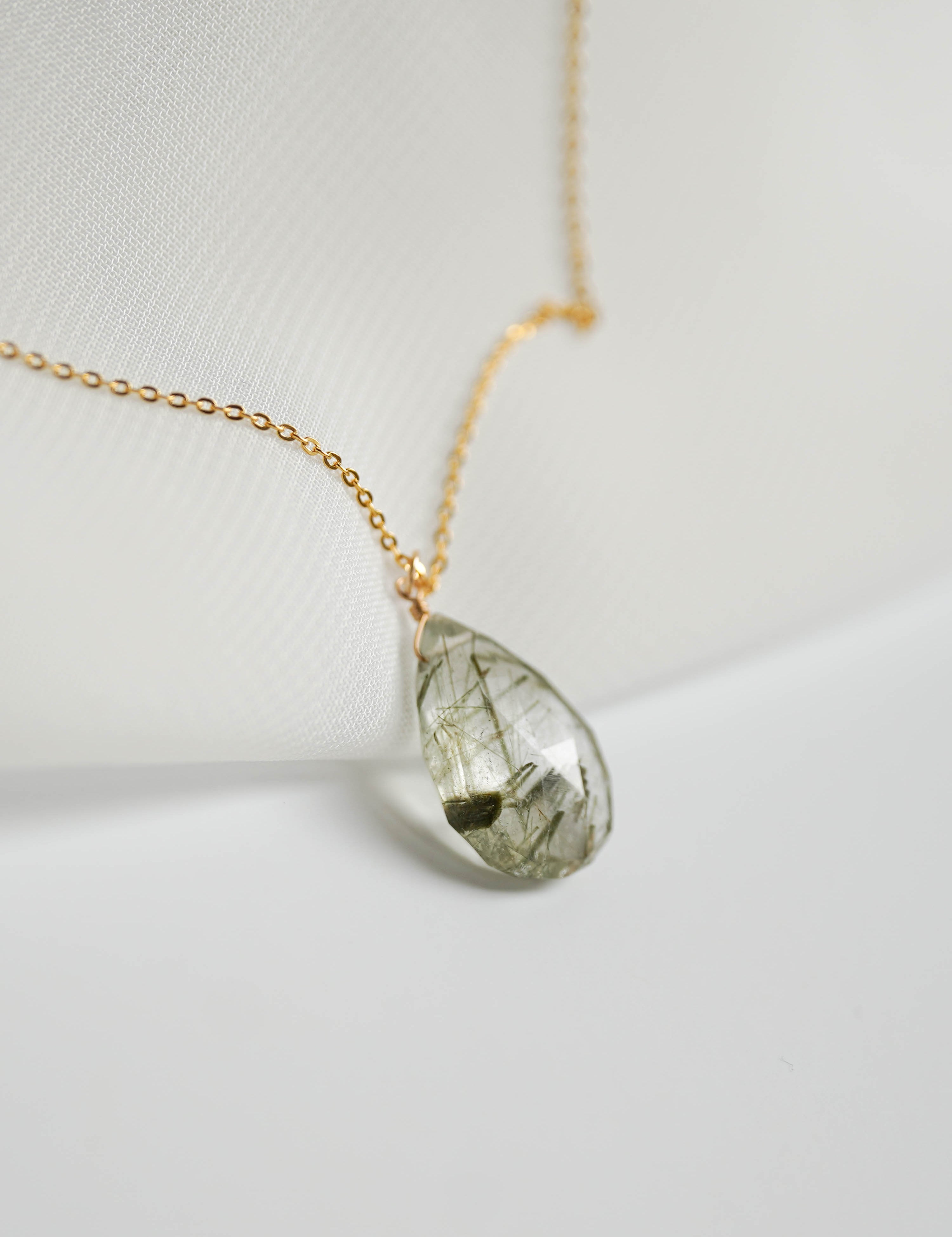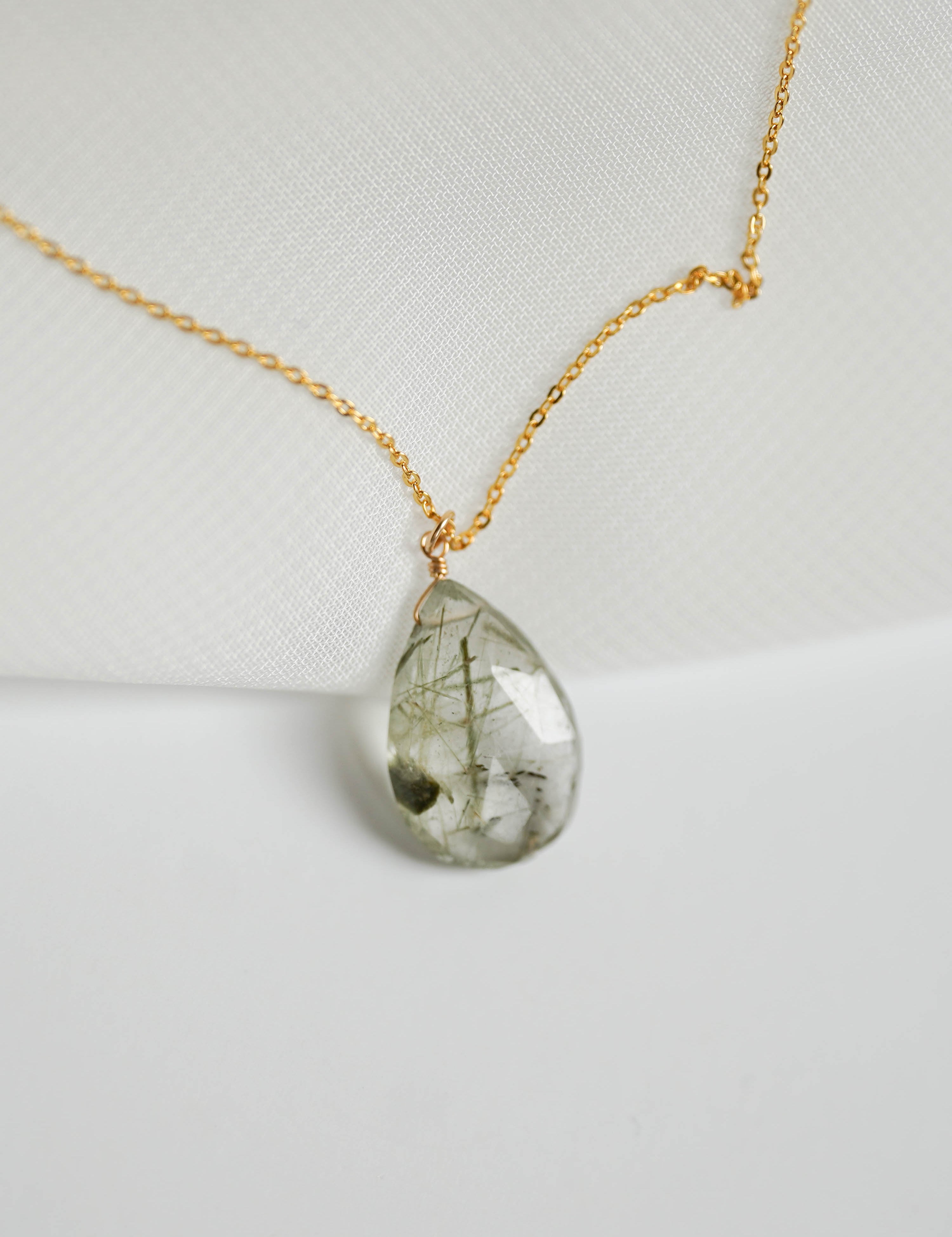 グリーンルチルクォーツ ドロップ ネックレス-A
