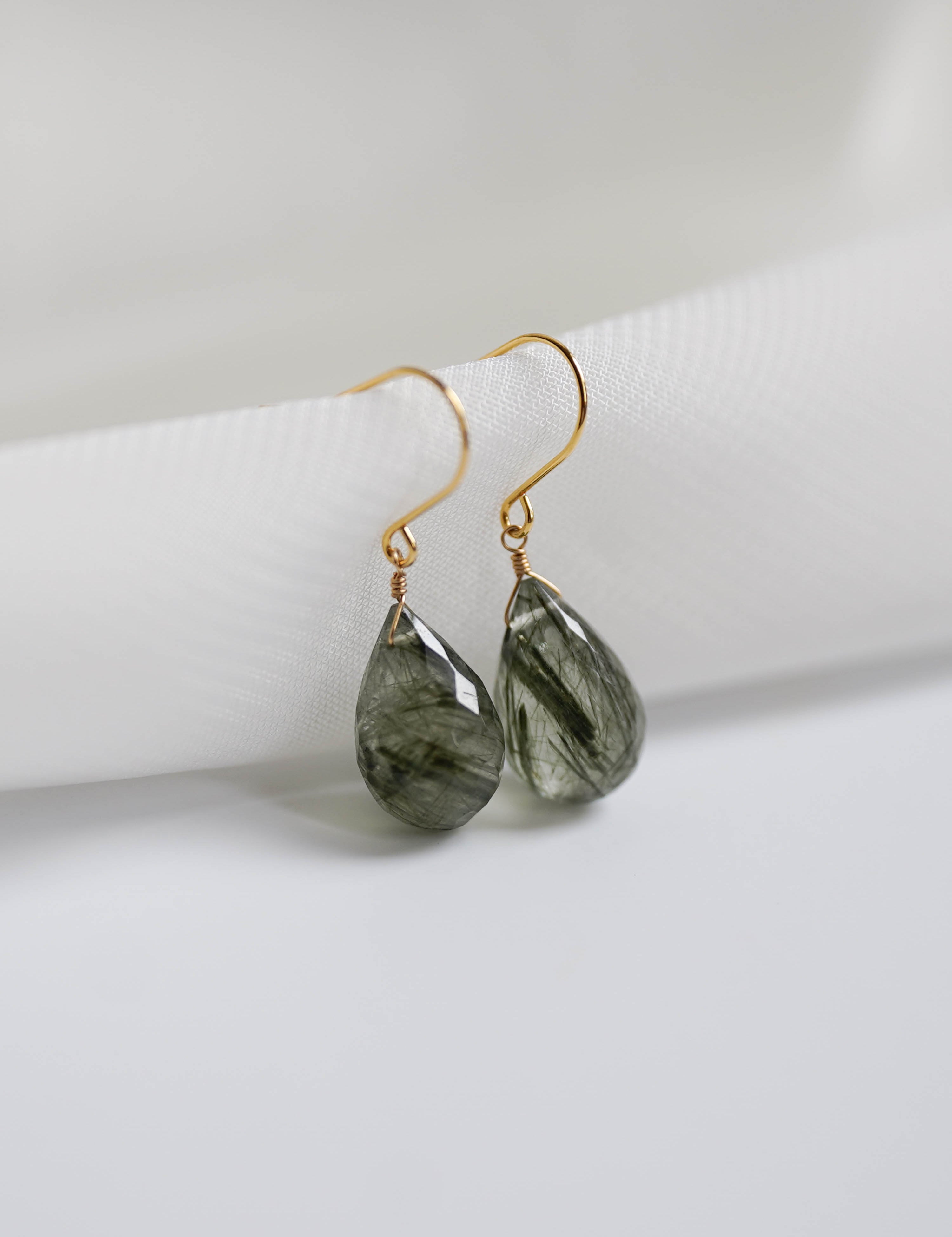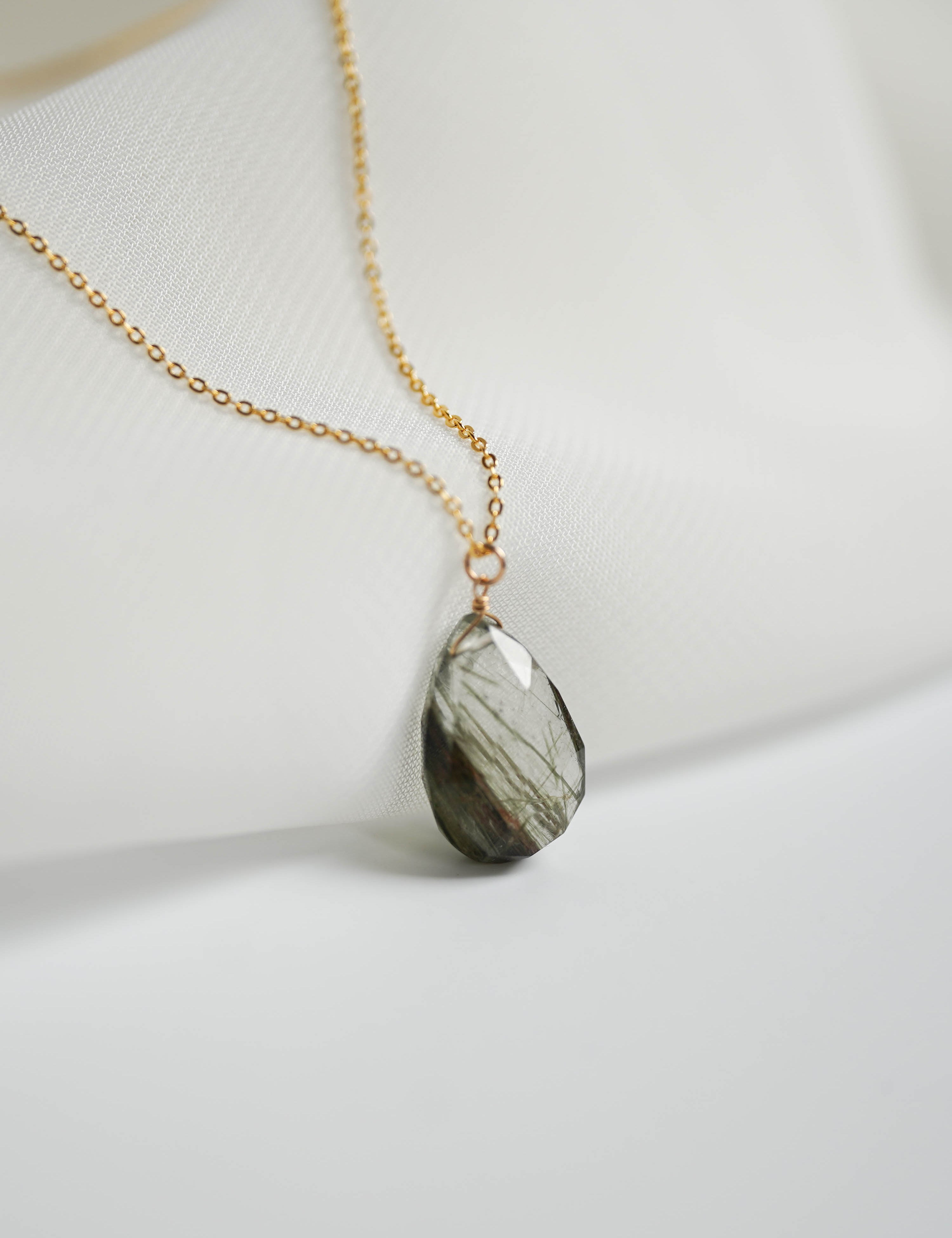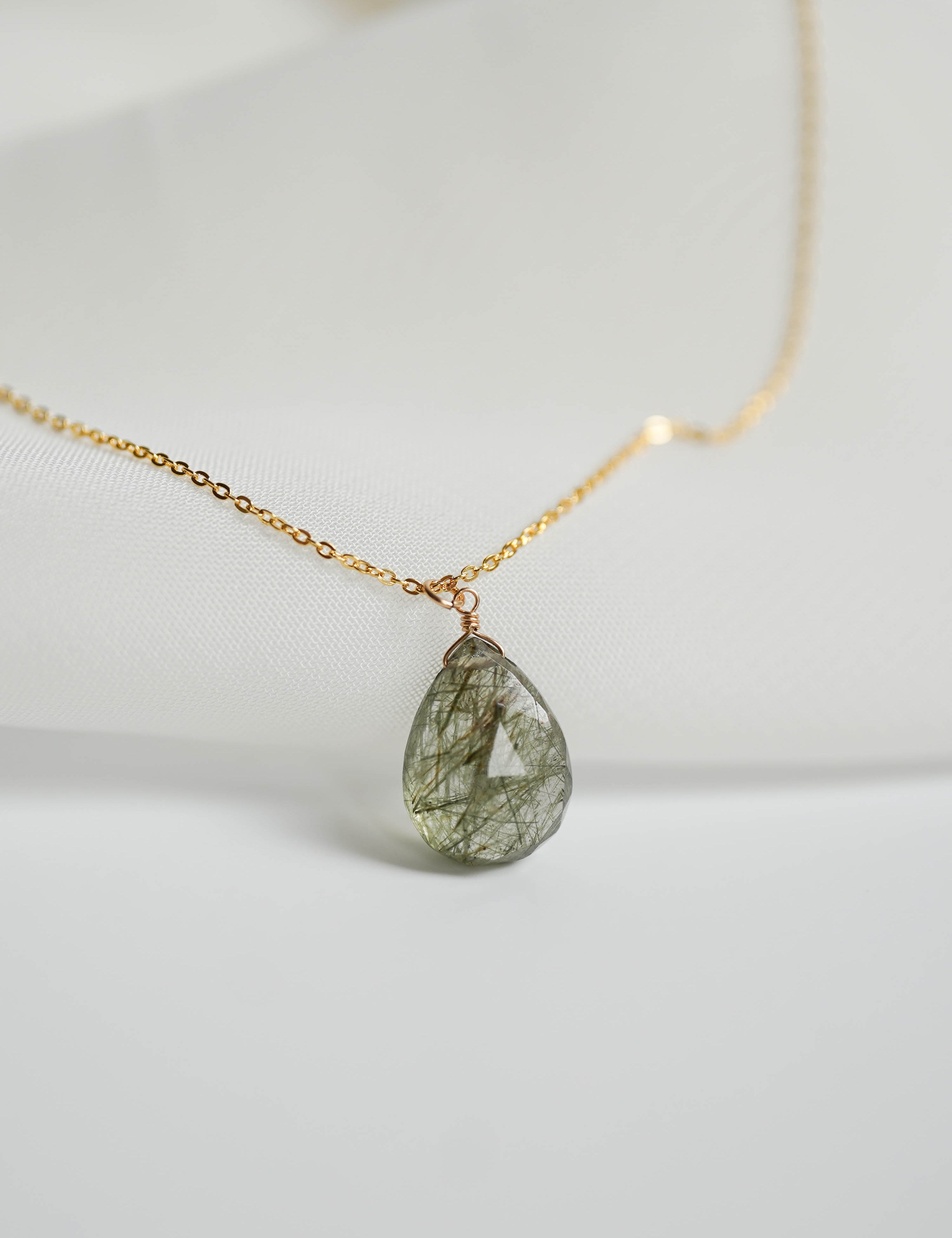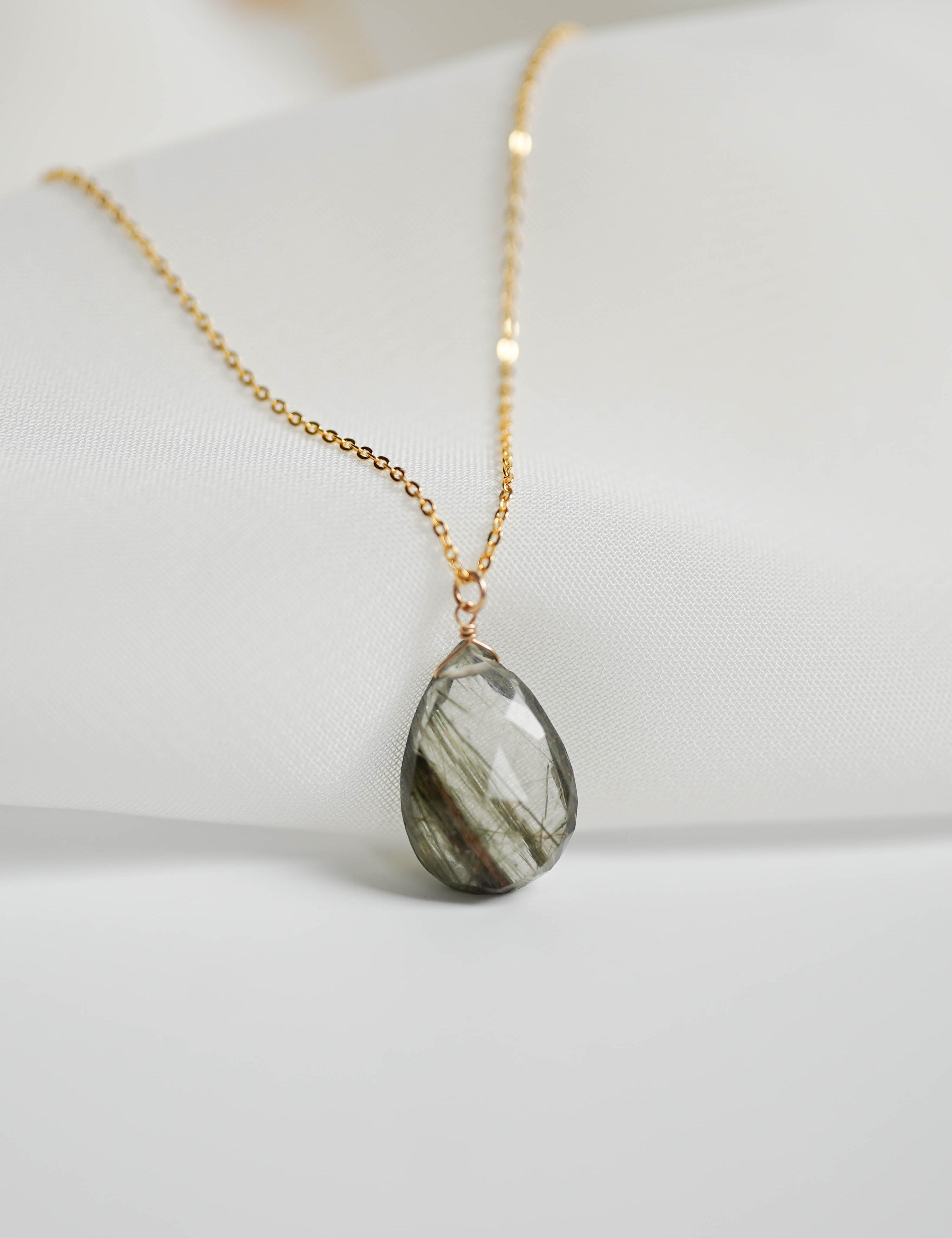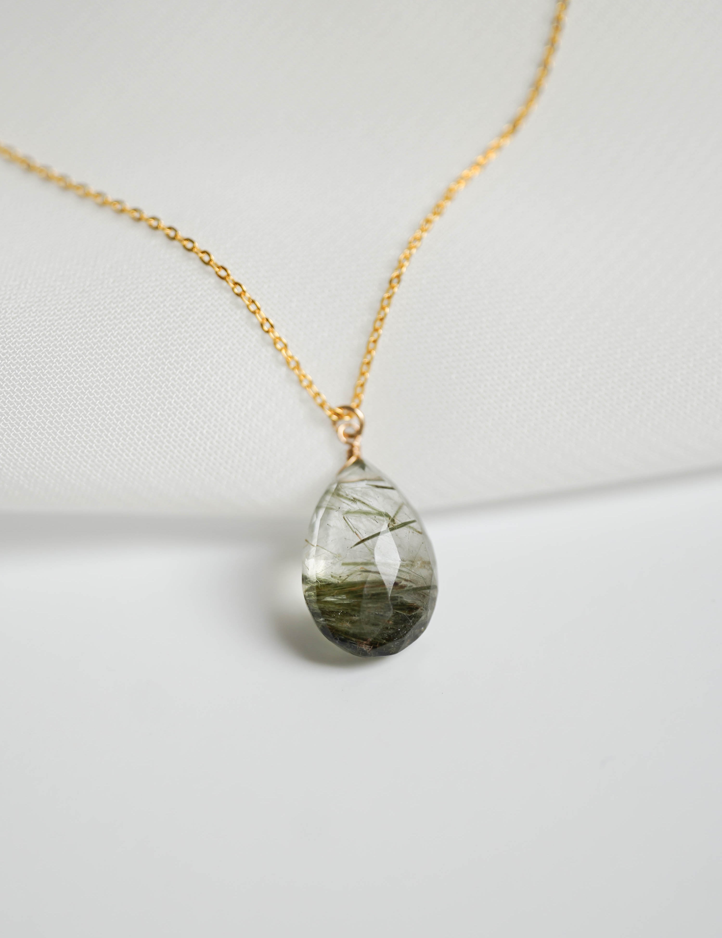 グリーンルチルクォーツ ドロップ ネックレス-A