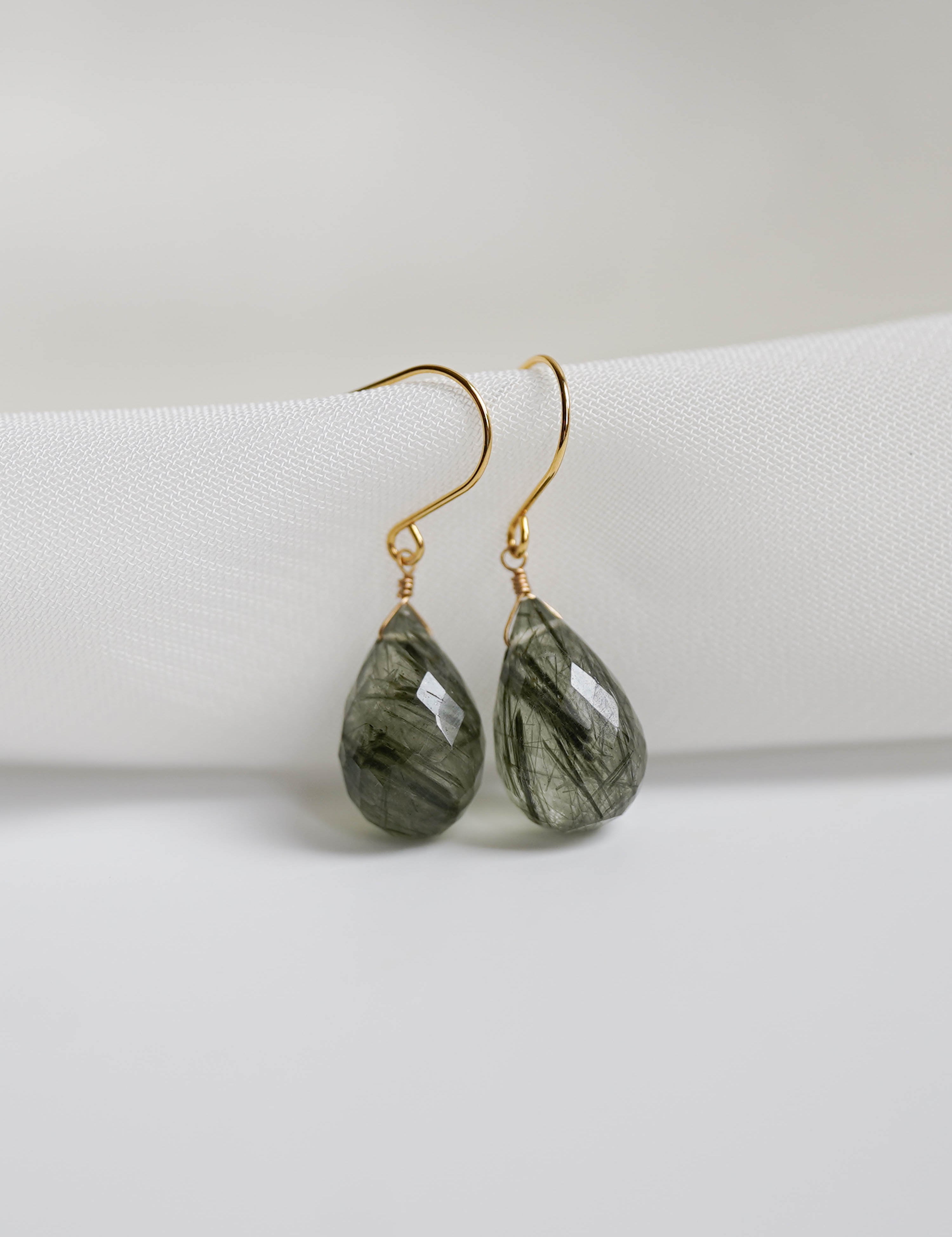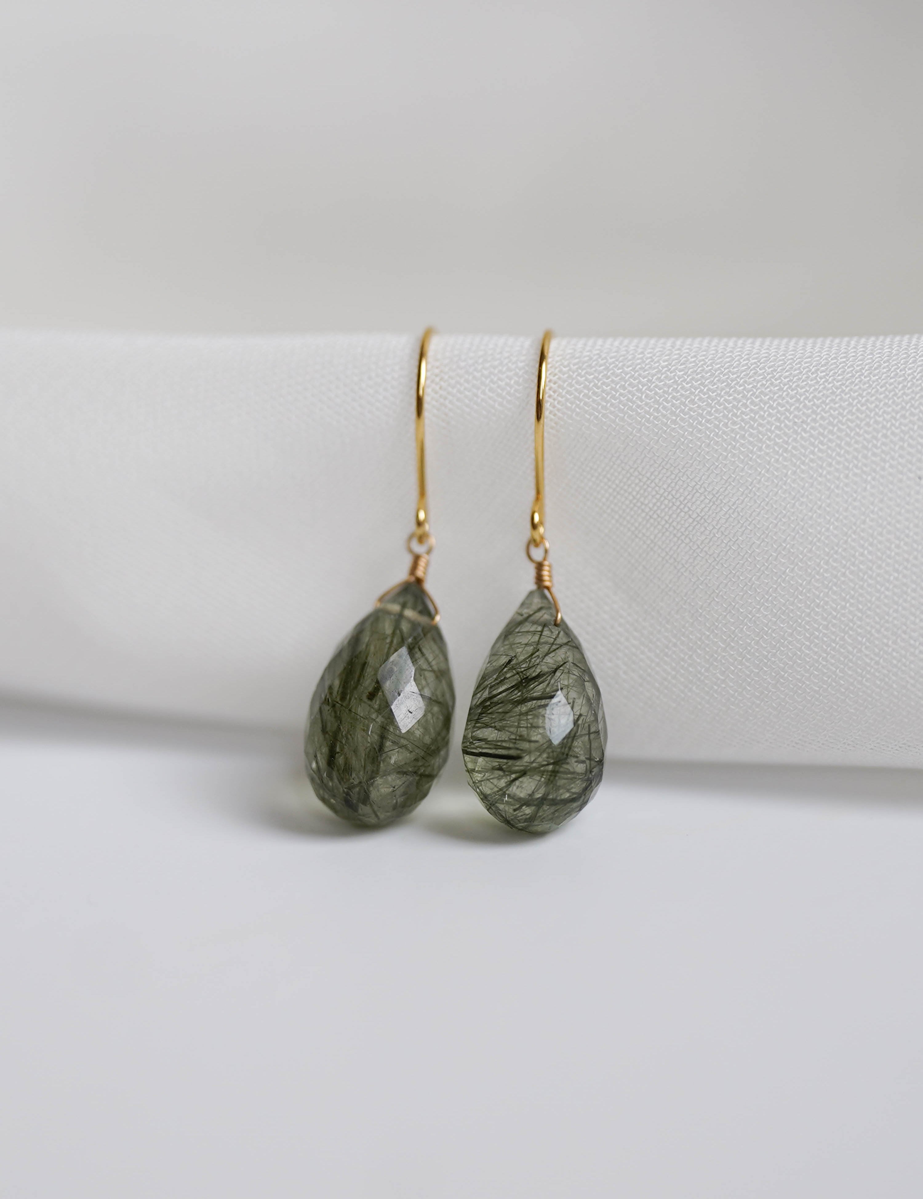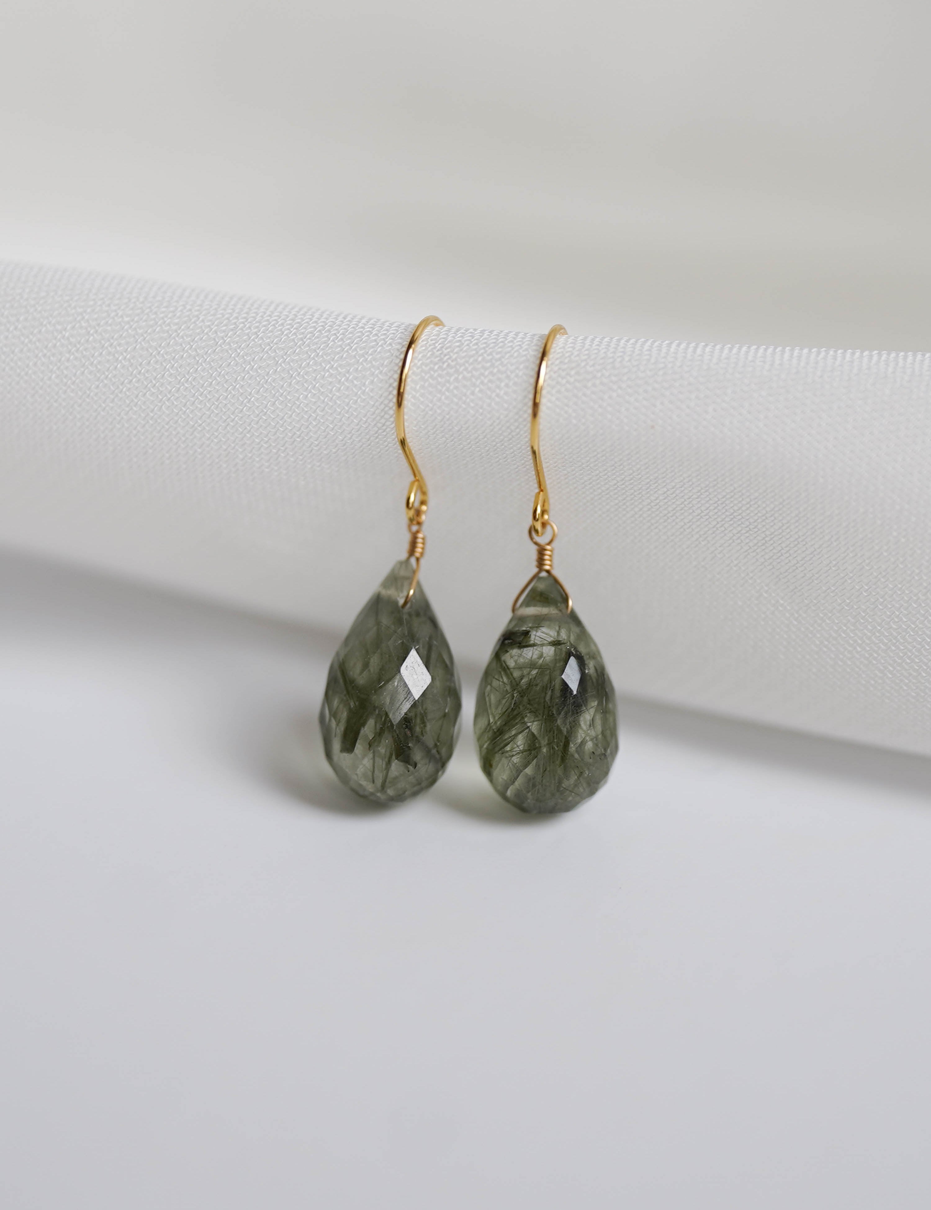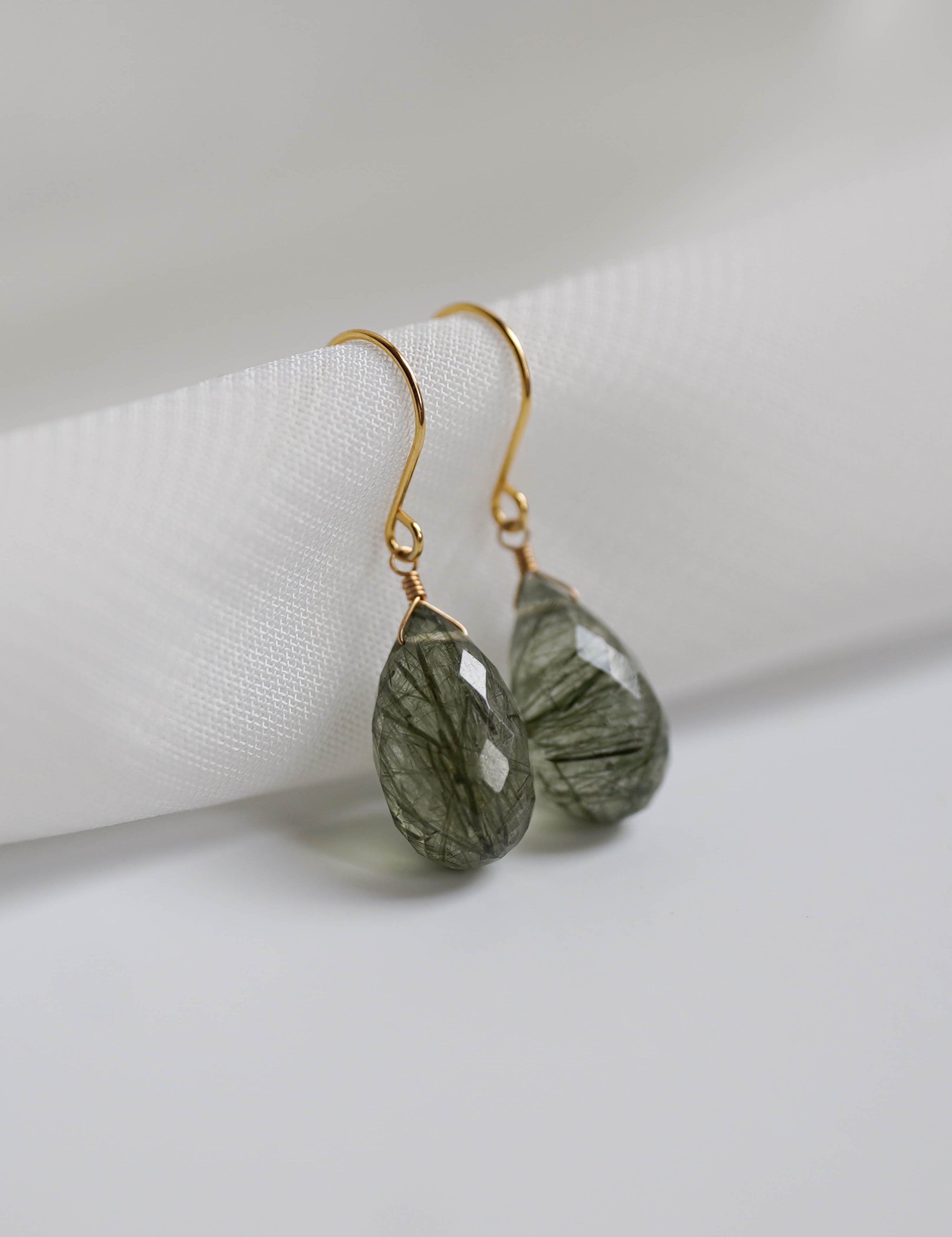 グリーンルチルクォーツ ドロップ ネックレス-A
