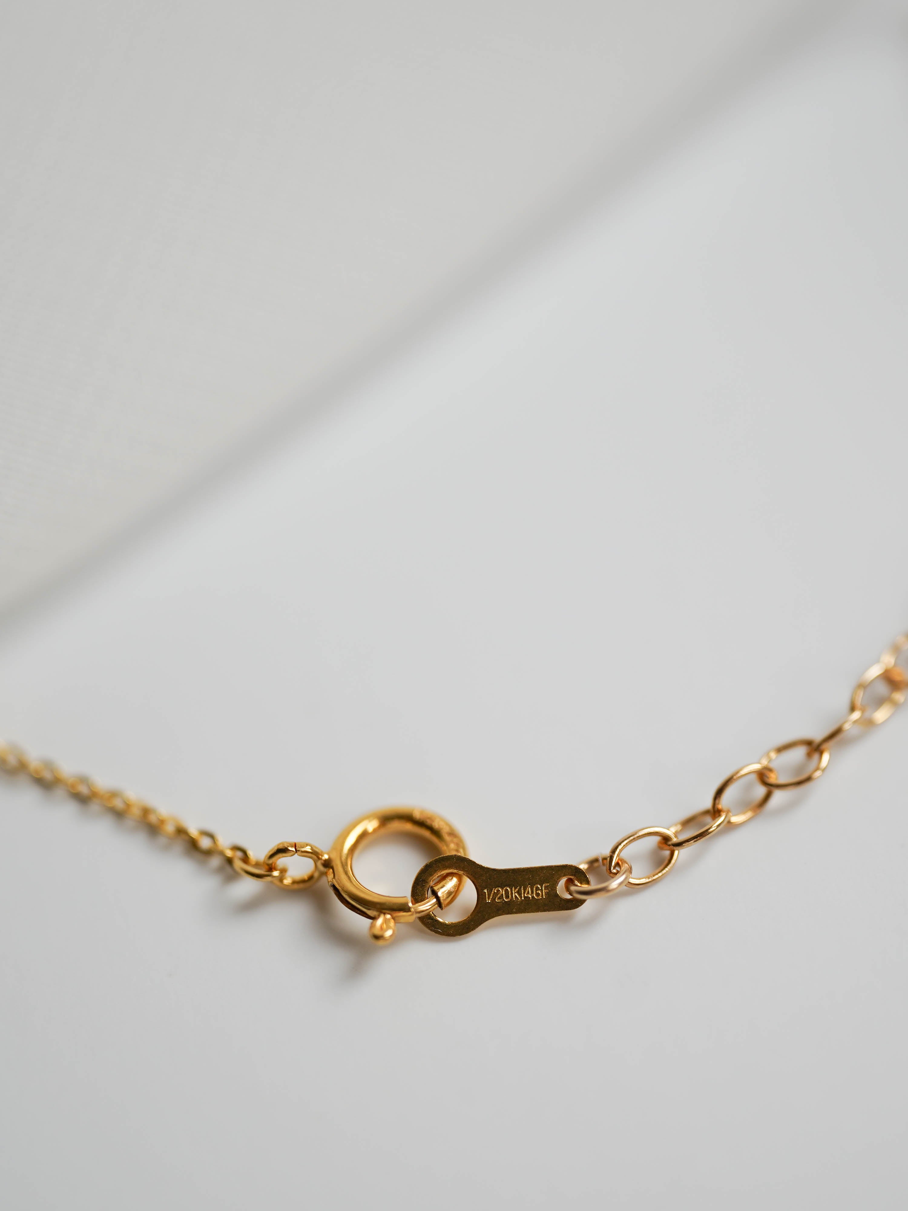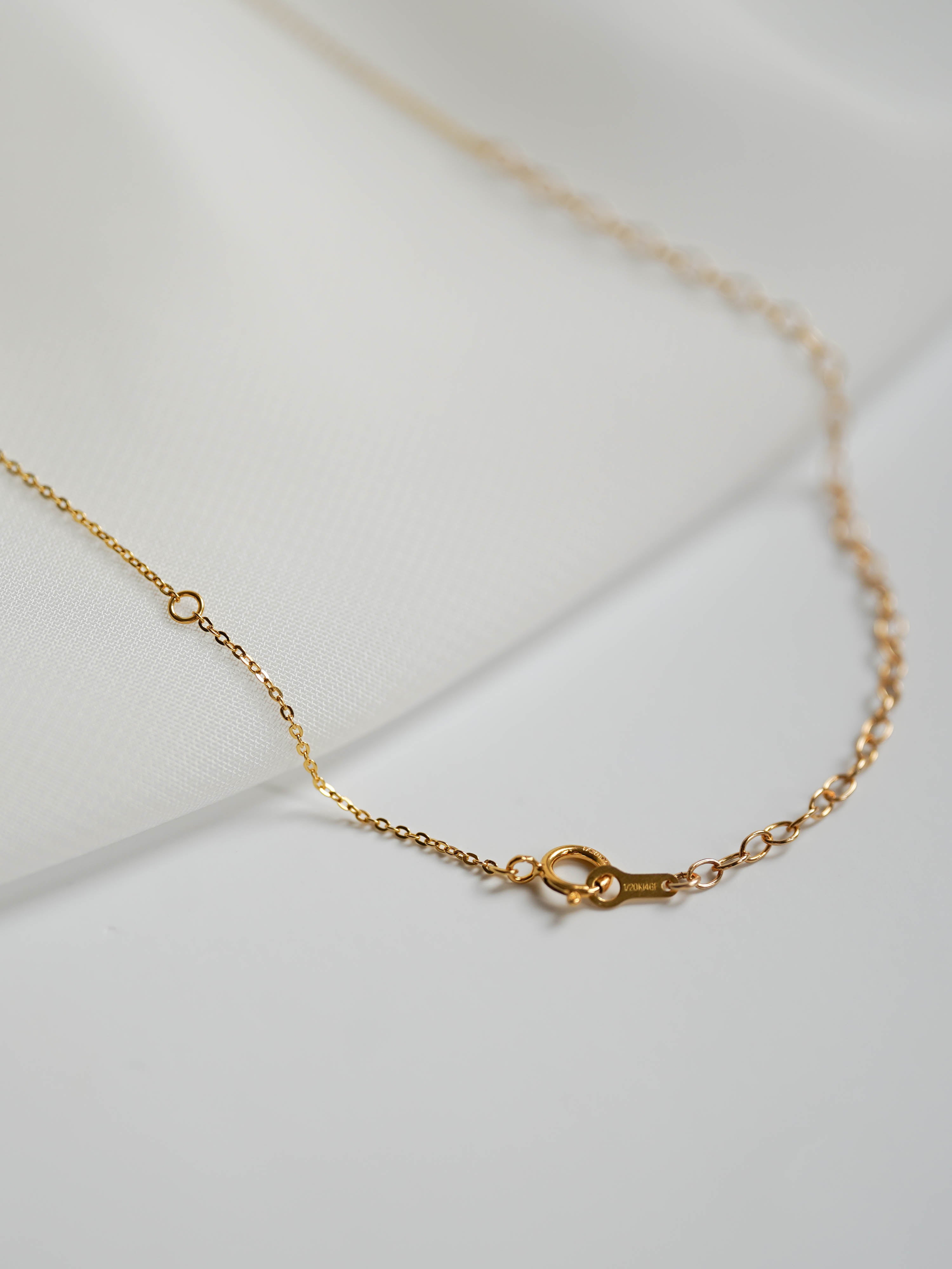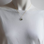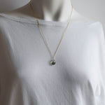 やや大きめの石で存在感があります。チェーンの長さは一番短いところで36cm、40〜50cmの間で自由に調整ができます。着用イメージ1枚目は長さ40cm、2枚目は50cmに調整したものです。